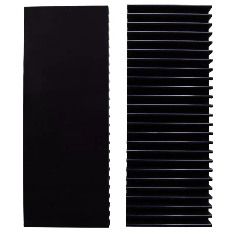 This black anodized aluminum heat sink plate of size 180mm X 70mm X 20mm with model number V1-THS-8-70-B is suitable for general purpose electronics applications. This heatsink can be used in DIY projects and prototypes. This heatsink has a base thickness of 5mm. It approximately weighs about 350 grams. This heat sink is also suitable for small power audio amplifiers.